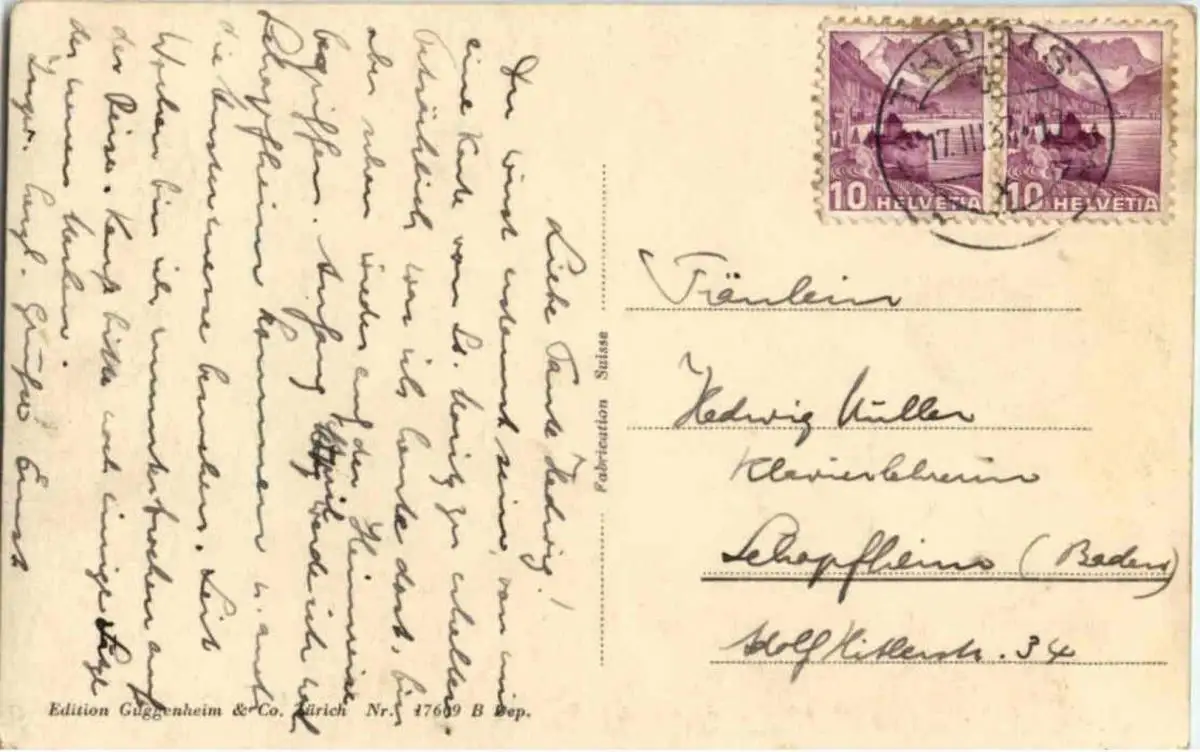 Danke. Alles Bestens. Können Sie mir allenfalls mitteilen, aus welchem Jahr die Postkarte stammt? Besten Dank.