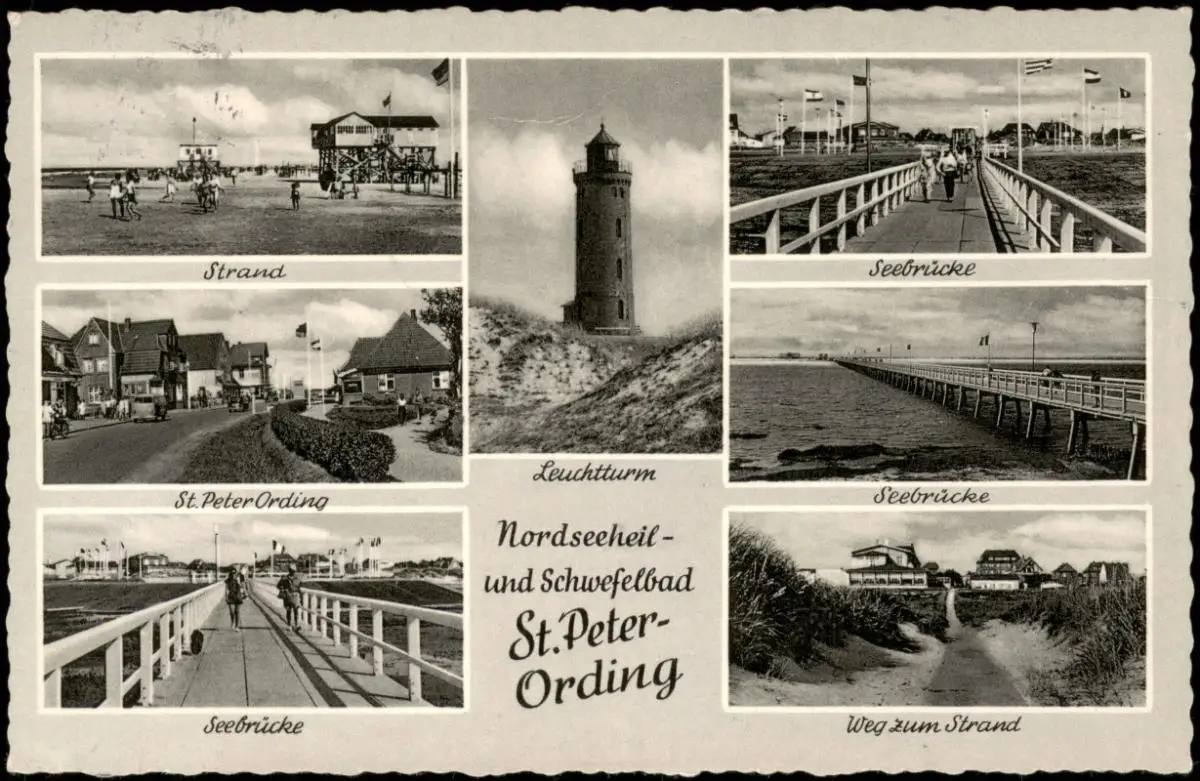 St. Peter-Ording Mehrbild-AK mit Strand, Leuchtturm, Seebrücke uvm. 1961