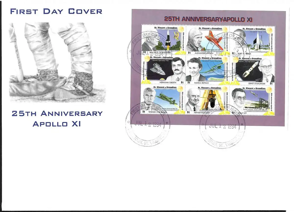 St. Vincent&Grenadines: 25th Anniversary of First Moon Landing, Apollo 11, FDC