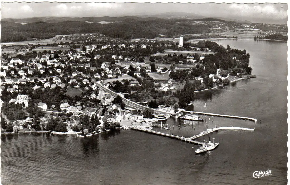 Staad am Bodensee, 1957 v. Konstanz-Allmannsdorf gebr. Luftbild-AK