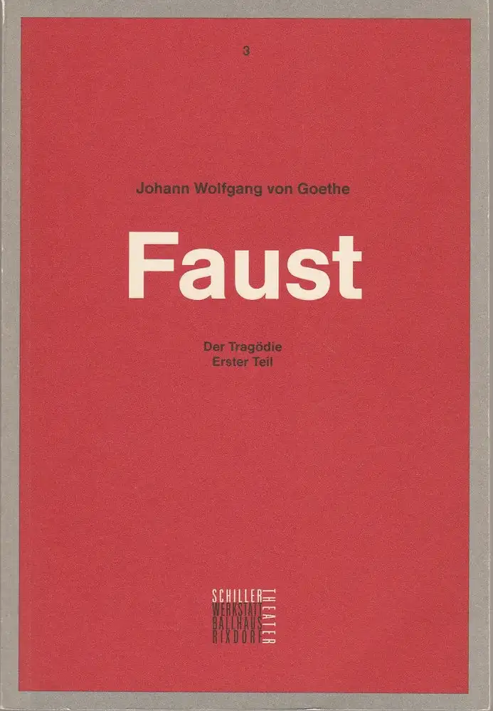 Titel: Programmheft Johann Wolfgang Goethe FAUST Der Tragödie erster Teil Premiere 20. Oktober 1990 Schiller Theater Programmbuch Nr. 3