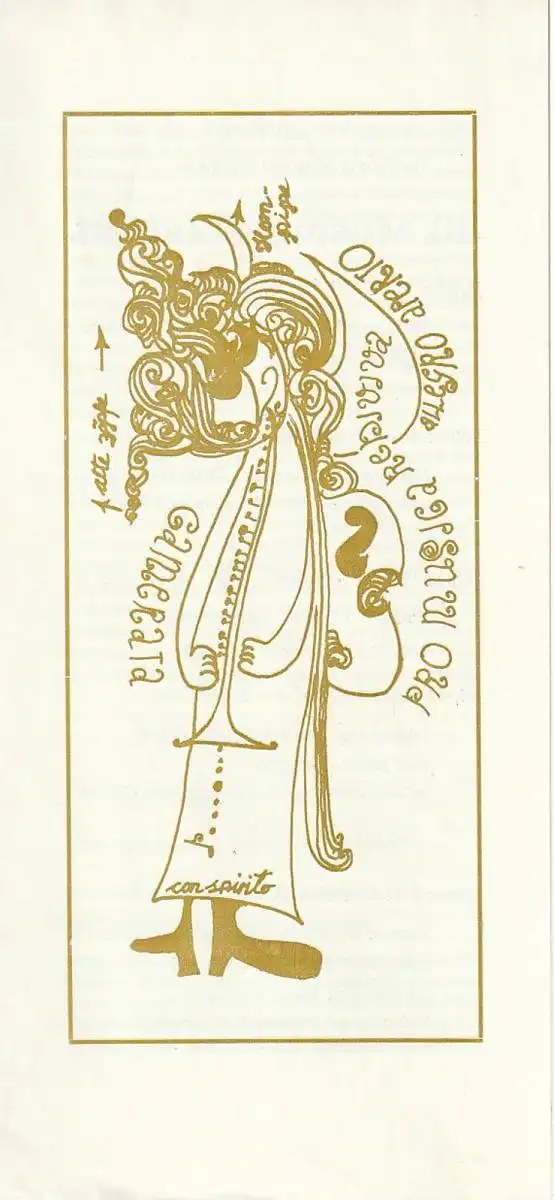 Ausführende: Horst Gebhardt, Tenor. Die Camerata pro musica rediviva des Staatlichen Sinfonieorchesters: Ursula Kúnze, Horst Hammer, Renate Müller, Adalbert Strehlow, Violine / Rolf Kunze Violoncello / Horst Görsch, Kontrabaß /Lisa Ballschmieter, Blockflöte/ Eva-Maria Leonhardt, Querflöte / Dieter Klett, Oboe / Simon Ulsperger, Fagott / Eva-Maria Rudolph, Cembalo. Programm: JOHANN PETER FICK: Konzert a-Moll für Blockföze, Querflöte, Violine und Basso continuo. LOTHAR GRAAP: Divertimento für Flöte, Oboe und Fagott. GEORG PHILIPP TELEMANN: Konzert D-Dut für vier Violinen. JOHANN JOACHIM Quantz: Trisonate d-Moll für Flöte, Oboe und Basso continuo. GEORG MELCHIOR HOFFMANN: Kantate BWV 189 Meine Seele rühmt und preist für Tenor, Oboe, Blockflöte, Violine und Basso continuo. - Theaterprogramm, Opernprogramm, Ballettprogramm, Musicalprogramm, Konzertprogramm, Theatermemorabilia, Programmhefte Sammlung, deutsche Theatergeschichte.