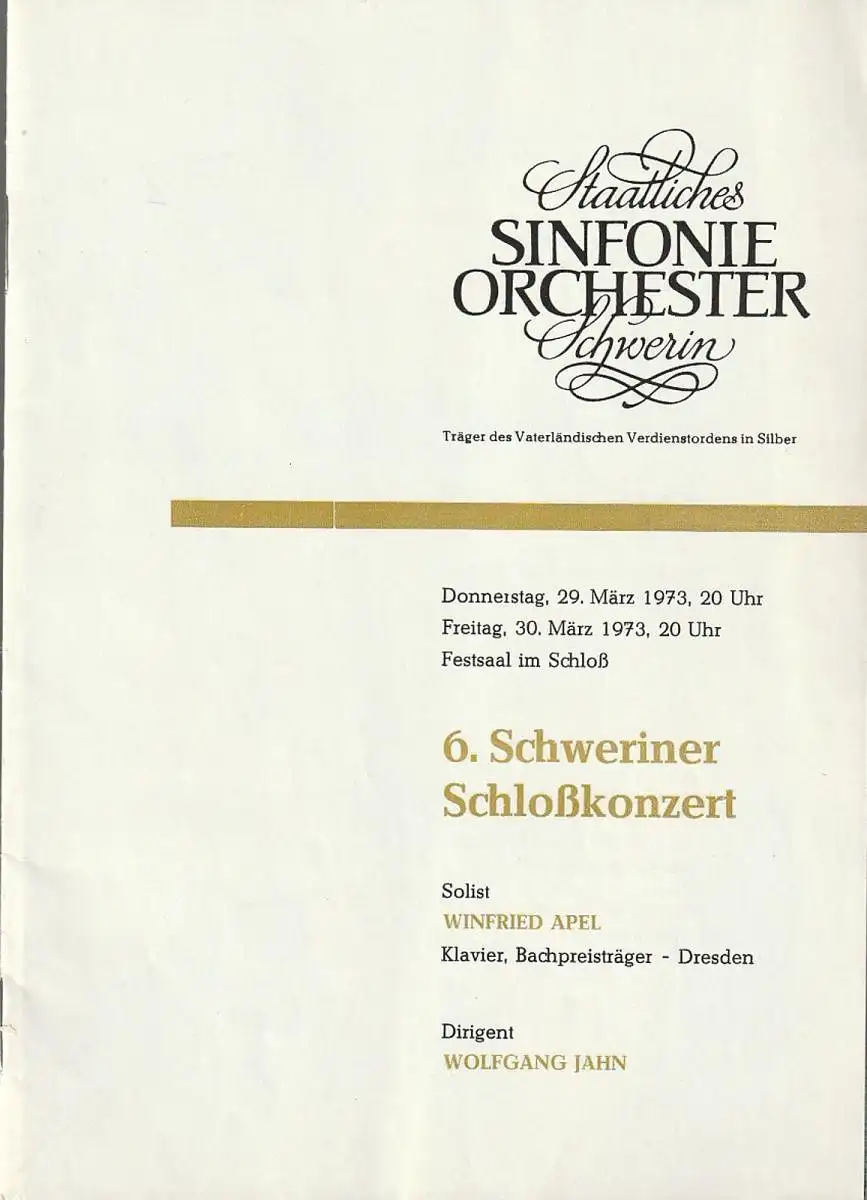 Titel: Programmheft 6. Schweriner Schloßkonzert 29. März 1973