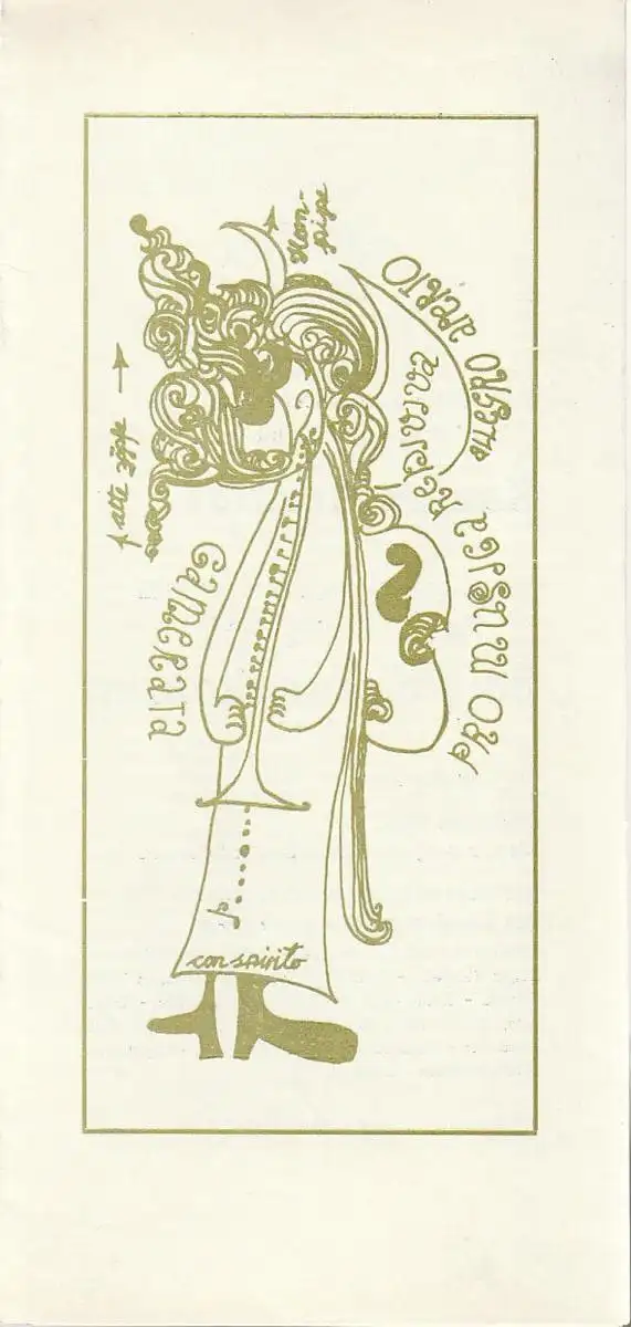 Ausführende: Christiane Röhr, Alt. Die Camerata pro musica rediviva des Staatlichen Sinfonieorchesters: Ursula Kúnze, Horst Hammer,Violine / Sonja Kummer, Eugen Kadebo, Viola /Rolf Kunze, Violoncello /Horst Görsch, Kontrabaß /Hans-Joachim Drechsler, Trompete / Dieter Klett, Eva Drechsler, Oboe, Lisa Ballschmieter, Englisch Horn / Simon Ulsperger, Fagott / Eva-Maria Rudolph, Cembalo. Programm: JOHANN CHRISTOPH PEZ: Ouverture d-Moll für zwei Oboen, Englischhorn und Fagott. JOHANN PHILIPP KRIEGER: Drei Arien. GEORG FRIEDRICH HÄNDEL: Ouverture zur Oper Atlanta. GEORG PHILIPP TELEMANN: Cantate oder Tauer-Musik eines kunsterfahrenen Canarien-Vogels. Concerto D- Dur für Trompete, zwei Oboen, Streicher und Basso continuo - Theaterprogramm, Opernprogramm, Ballettprogramm, Musicalprogramm, Konzertprogramm, Theatermemorabilia, Programmhefte Sammlung, deutsche Theatergeschichte.
