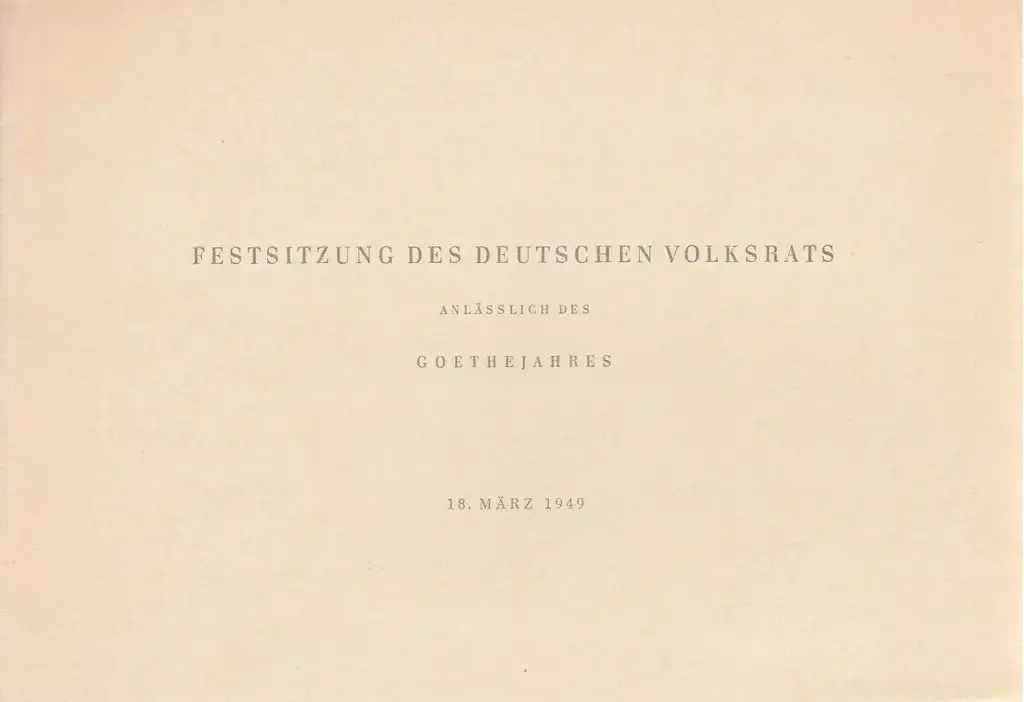Titel: Programmheft FESTSITZUNG DES DEUTSCHEN VOLKSRATS anlässlich des Goethejahres 18. März 1949