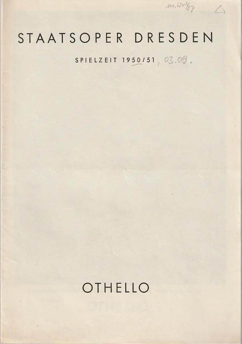 Staatsoper Dresden, Günter Haußwald: Programmheft Giuseppe Verdi OTHELLO 3. September 1950 Großes Haus Spielzeit 1950 / 51.