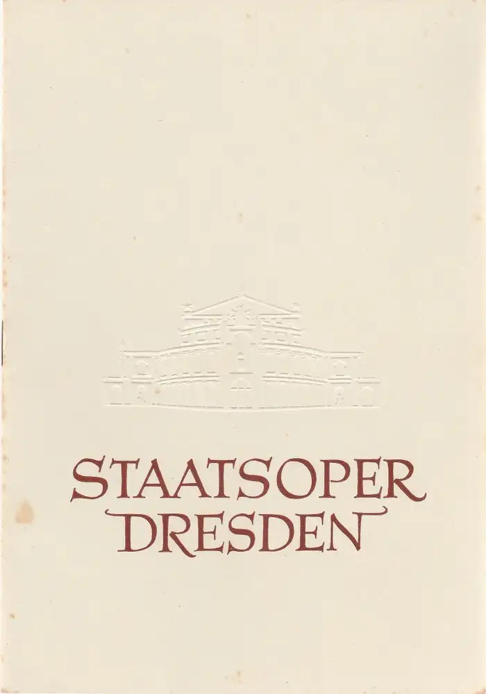 Blätter der Staatsoper Dresden. Neu einstudiert und inszeniert. Musikalische Leitung: Rudolf Neuhaus. Inszenierung: Alfred Eichhorn. Gesamtausstattung: Hainer Hill. Mitwirkende: Wilfried Krug, Helmuth Kaphahn, Manfred Huebner, Brünnhild Friedland, Dora Zschille, u. a. - Programmhefte24 - Programmhefte für Theater, Oper & Ballett.
