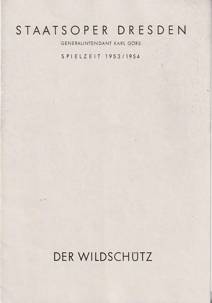 Staatsoper Dresden, Karl Görs, Eberhard Sprink: Programmheft Albert Lortzing DER WILDSCHÜTZ Spielzeit 1953 / 54.