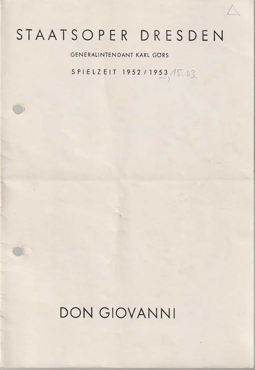 Titel: Programmheft Wolfgang Amadeus Mozart DON GIOVANNI 15. März 1953 Großes Haus Spielzeit 1952 / 53
