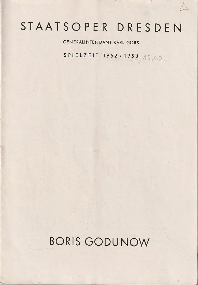 Staatsoper Dresden, Karl Görs, Günter Haußwald: Programmheft Modest P. Mussorgski BORIS GODUNOW 13. Februar 1953 Großes Haus Spielzeit 1952 / 53.
