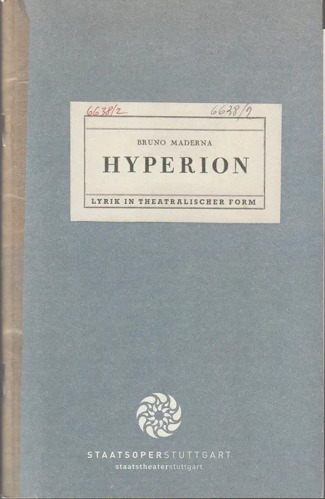 Staatsoper Stuttgart, Albrecht Puhlmann, Sergio Morabito, Angela Beuerle, Marlin Pahl: Programmheft Bruno Maderna HYPERION Premiere 16. Februar 2007 Spielzeit 2006 / 2007.