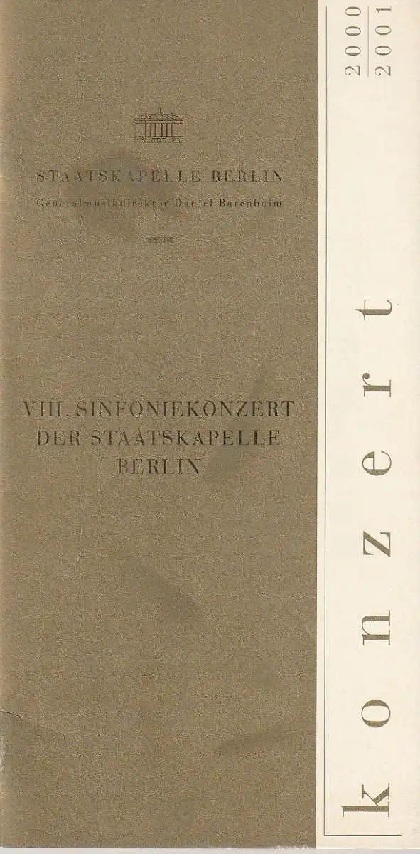 Titel: Programmheft VIII. SINFONIEKONZERT DER STAATSKAPELLE BERLIN 11. + 12. Juli 2001 Staatsoper Berlin Spielzeit 2000 / 2001