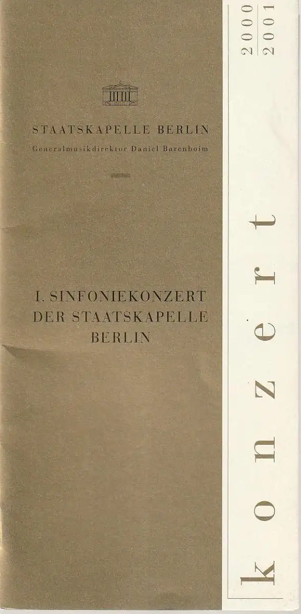 Staatsoper Unter den Linden, Daniel Barenboim, Georg Quander, Ralf Waldschmidt, Rolf Kanzler: Programmheft I. SINFONIEKONZERT DER STAATSKAPELLE BERLIN 12. + 13. September 2000 Konzerthaus Berlin Spielzeit 2000 / 2001.