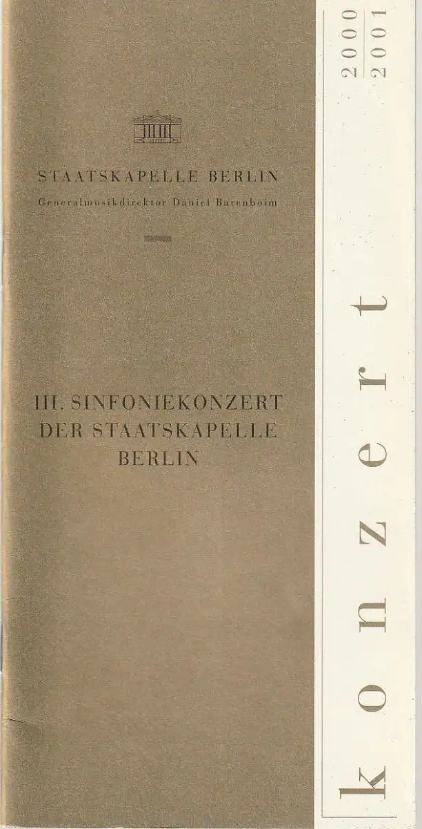 Titel: Programmheft III. SINFONIEKONZERT DER STAATSKAPELLE BERLIN 21. + 22. November 2000 Konzerthaus Berlin Spielzeit 2000 / 2001