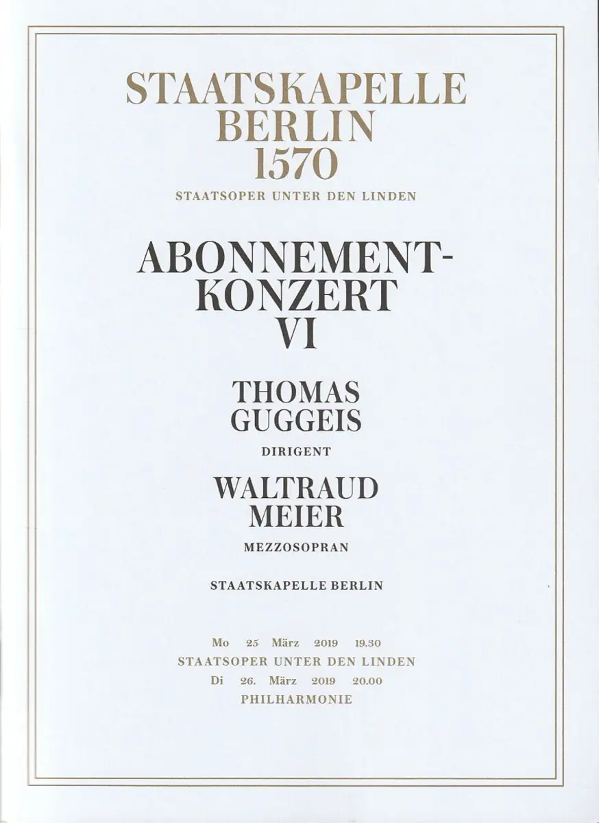 Staatsoper Unter den Linden, Staatskapelle Berlin 1570, Daniel Barenboim, Matthias Schulz, Jana Beckmann, Detlef Giese: Programmheft ABONNEMENT-KONZERT VI 25. / 26. März 2019.