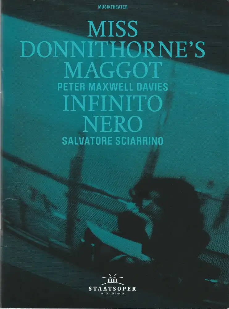 Staatsoper Unter den Linden im Schiller Theater, Jürgen Flimm, Daniel Barenboim, Jens Schroth, Elena Garcia-Fernandez: Programmheft MISS DONNITHORNE´S MAGGOT / INFINITO NERO Premiere 4. Oktober 2010 Werkstatt.