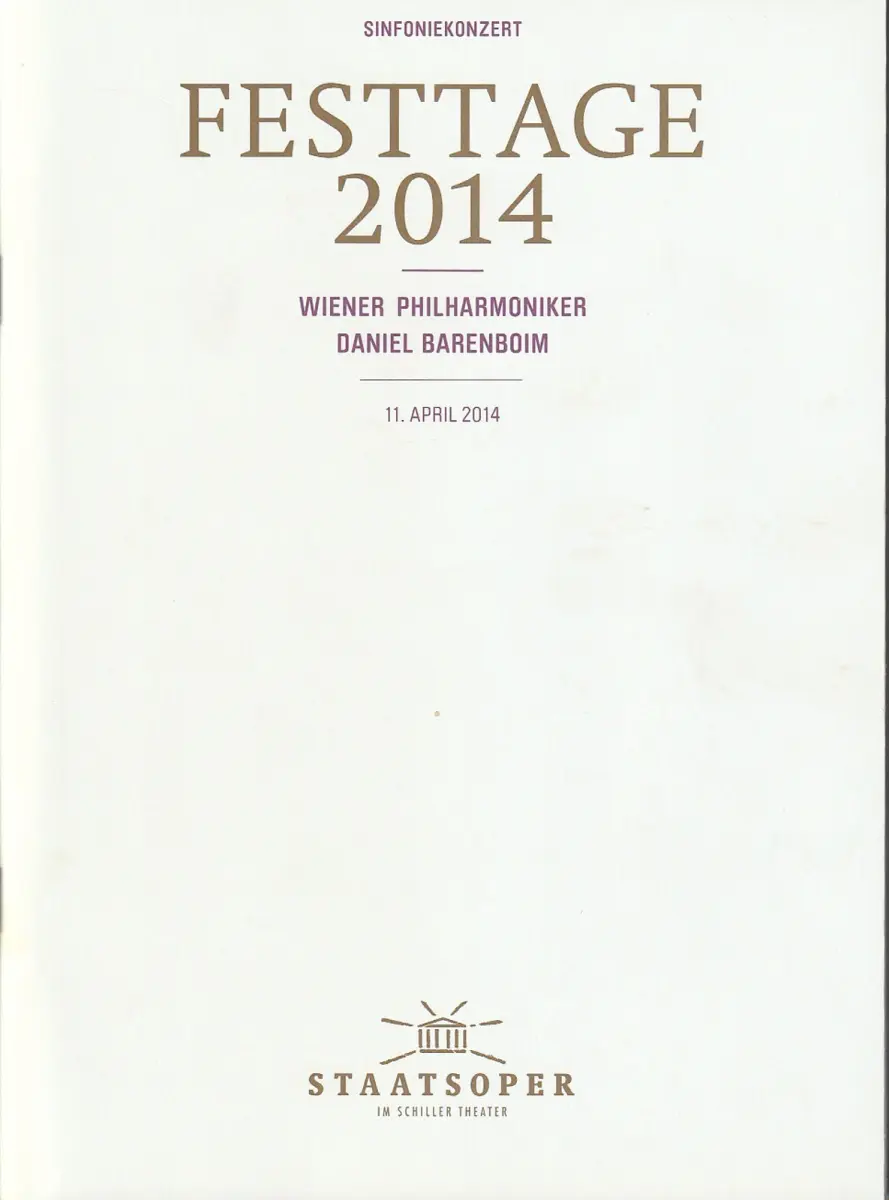 Titel: Programmheft FESTTAGE BERLIN 2014 WIENER PHILHARMONIKER DANIEL BARENBOIM 11. April 2014