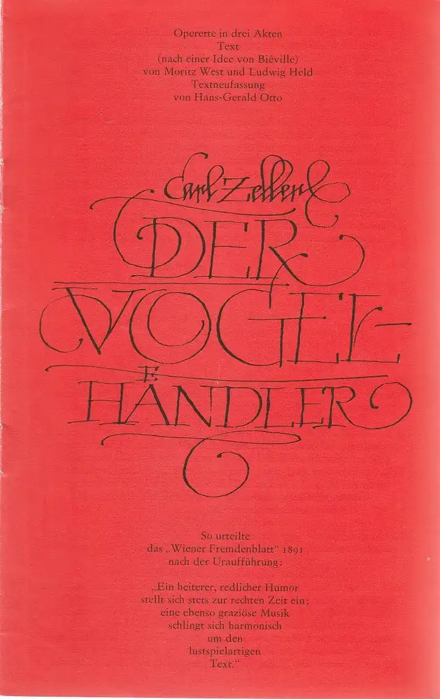 Staatsoperette Dresden, Reinhold Stövesand, Jochen Paentzer, Ekkehard Walter: Programmheft Carl Zeller DER VOGELHÄNDLER Premiere 26. November 1982 Spielzeit 1982 / 83 Heft 3.