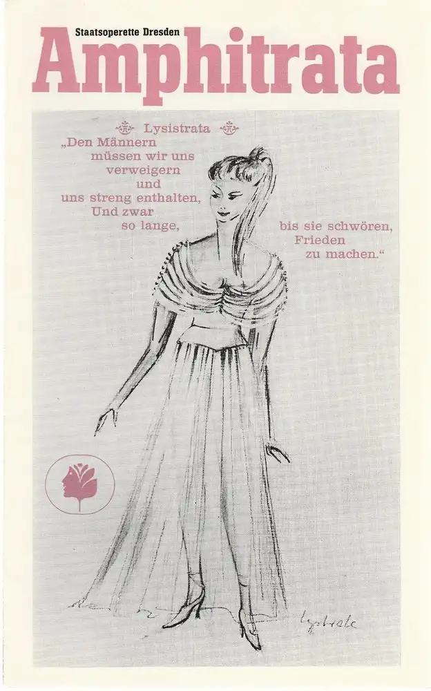mehrfach gefalteter Bogen, Format ca. 13 cm x 20,5 cm, beidseitig bedruckt = 6 Seiten, vier ganzseitige Figurinen von Siegfried Rennert, beiliegende Besetzungsliste. Zustand: gut
