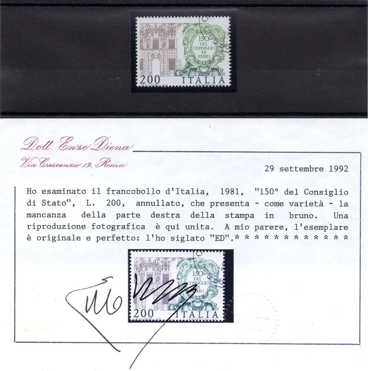 Staatsrat Nr. 1569a mit unvollständigem Braundruck auf dem Teil des Schwertpalastes - auffällig und ungewöhnlich - Zert. ED Cod. 885/17