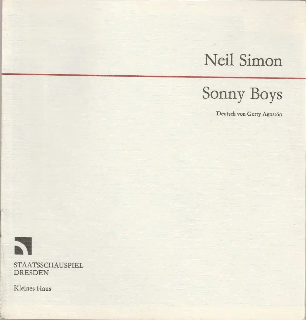 Staatsschauspiel Dresden, Gerhard Wolfram,Karla Kochta, Wolfgang Hennig, Hans-Ludwig Böhme ( Fotos ): Programmheft Neil Simon SONNY-BOYS Premiere 24. Februar 1984 Kleines Haus.