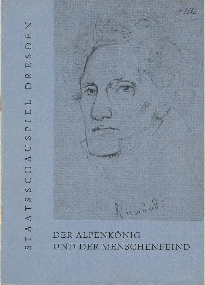 Staatsschauspiel Dresden, Heinrich Allmeroth, Eberhard Sprink, Heinz Pietsch: Programmheft Der Alpenkönig und der Menschenfreind von Ferdinand Raimund Spielzeit 1961 / 62 Heft 1 1961.