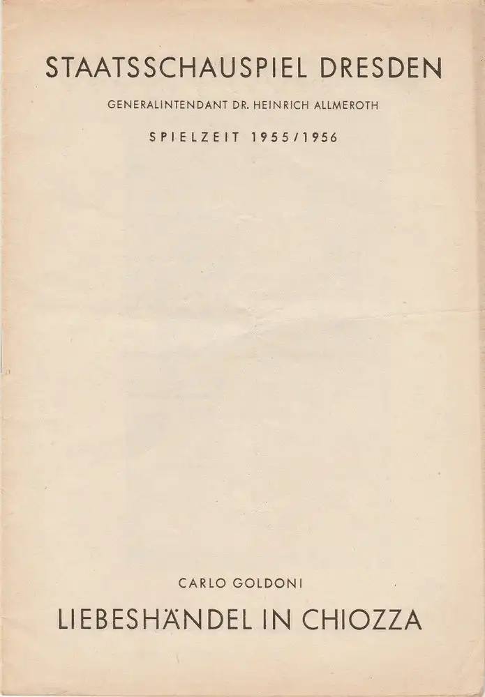 Staatsschauspiel Dresden, Heinrich Almeroth, Lothar Ehrlich: Programmheft Carlo Goldoni LIEBESHÄNDEL IN CHIOZZA Spielzeit 1955 / 56.