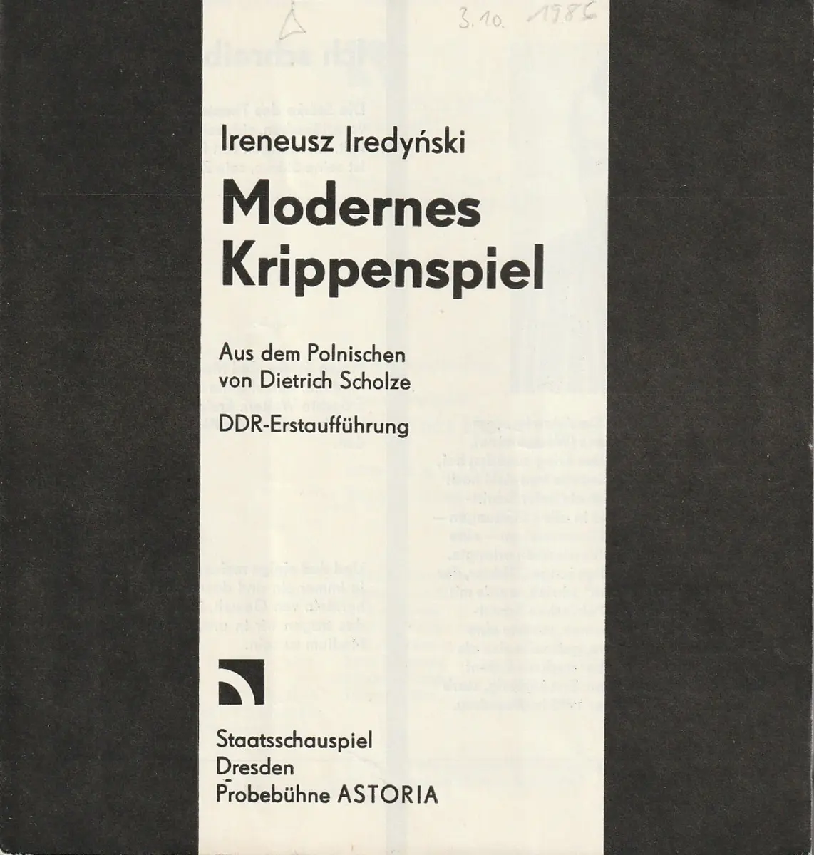 Staatsschauspiel Dresden, Probebühne ASTORIA, Gerhard Wolfram, Johannes Richter: Programmheft Ireneusz Iredynski MODERNES KRIPPENSPIEL 3. Oktober 1986.
