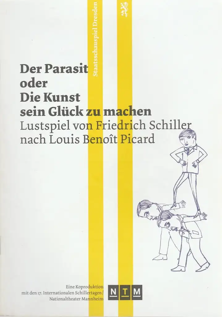 oder DIE KUNST SEIN GLÜCK Zu MACHEN. Lustspiel von Friedrich Schiller nach Louis Benoit Picard. Regie: Stefan Bachmann. Bühne: Olaf Altmann. Kostüme: Barbara Drosihn. Musik: Sven Kaiser. Mitwirkende: Philipp Lux, Hannelore Koch, Ines Marie Westernströer, Ahmad Mesgarha, Torsten Ranft, Lars Jung, Matthias Luckey, Christian Clauß, Benjamin Höppner - Theaterprogramm, Opernprogramm, Ballettprogramm, Musicalprogramm, Konzertprogramm, Theatermemorabilia, Programmhefte Sammlung, deutsche Theatergeschichte.