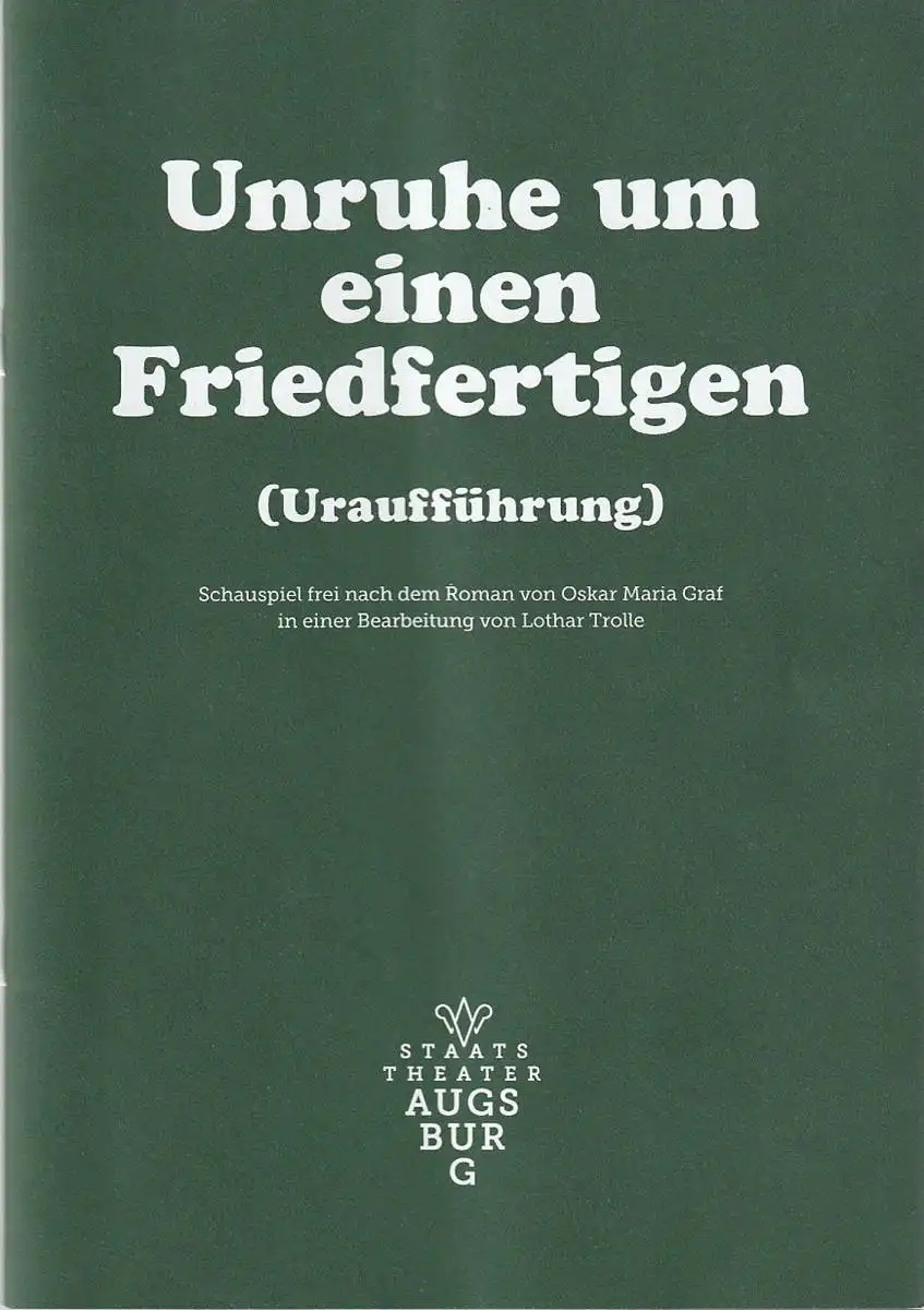 Staatstheater Augsburg, Andre Bücker, Sarah Mössner, Tamara Steber: Programmheft Uraufführung Lothar Trolle UNRUHE UM EINEN FRIEDFERTIGEN Spielzeit 2022 / 23 Nr. 14.