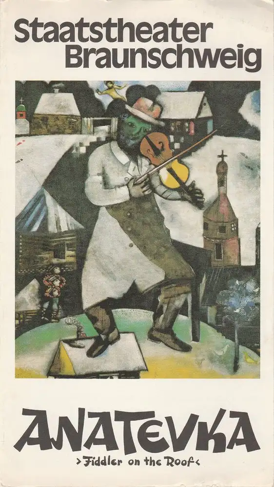 Fiddler on the Roof. Musical nach der Erzählung Tevje der Milchmann von Scholem Alejchem. Buch von Joseph Stein und Sheldon Harnick. Deutsche Übersetzung von Rolf Merz. Musikalische Leitung: Bruno Weil. Inszenierung: Werner Saladin. Bühne und Kostüme: Hubert Popp. Choreographie: Joachim Gerster. Mitwirkende: Wolf Hacke, Renate Franken, Monika Söhnel, Geeske Hof-Helmers, Ulrike Schmidt, u. a. - Theaterprogramm, Opernprogramm, Ballettprogramm, Musicalprogramm, Konzertprogramm, Theatermemorabilia, Programmhefte Sammlung, deutsche Theatergeschichte.