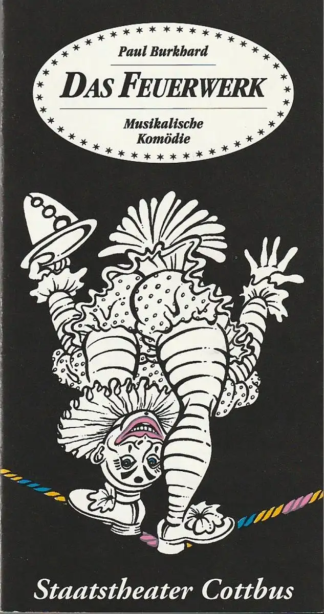 Staatstheater Cottbus, Christoph Schroth, Jutta Maria Winkler, Helmut Müller, Meinhard Bärmich: Programmheft Paul Burkhard DAS FEUERWERK Premiere 28. März 1992.