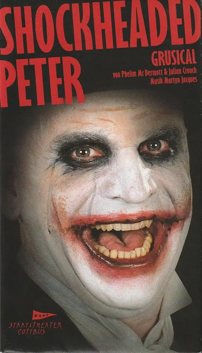 STRUWWELPETER. Grusical von den Tiger Lillies Phelim McDermott, Julian Crouch. Musik: martyn Jacques. Nach Motiven aus dem Struwwelpeter von Heinrich Hoffmann. Inszenierung: Mario Holetzeck. Musikalische Leitung: Hans Petith. Bühne: Juan Leon. Kostüme: Susanne Suhr. Mitwirkende: Gunnar Golkowski, Sigrun Fischer, Kai Börner, Heidrun Bartholomäus, Thomas Harms, Johannes Kienast, Lucie Thiede, u.a. - Schlüsselwörter: Theaterprogramm, Opernprogramm, Ballettprogramm, Musicalprogramm, Konzertprogramm, Theatermemorabilia, Programmhefte Sammlung, deutsche Theatergeschichte.