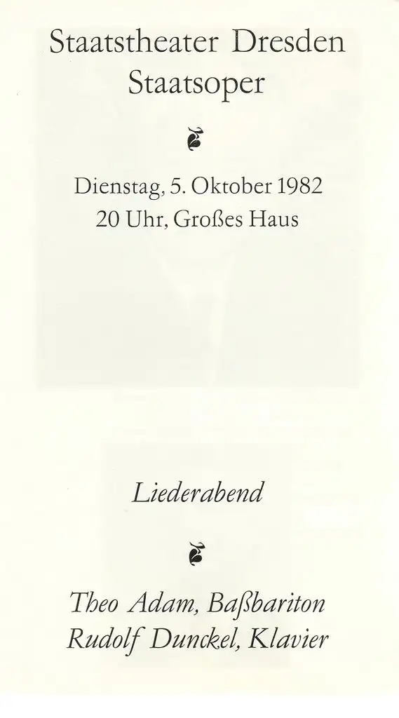 Titel: Programmheft LIEDERABEND THEO ADAM / RUDOLF DUNCKEL 5. Oktober 1982 Staatsoper Großes Haus