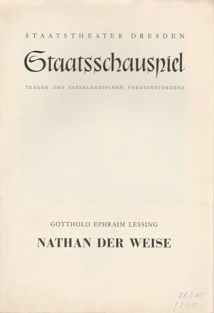 Staatstheater Dresden, Gerd Michael Henneberg, Eberhard Sprink, Heinz Pietzsch: Programmheft Gotthold Ephraim Lessing NATHAN DER WEISE Spielzeit 1959 / 60 Heft 7.