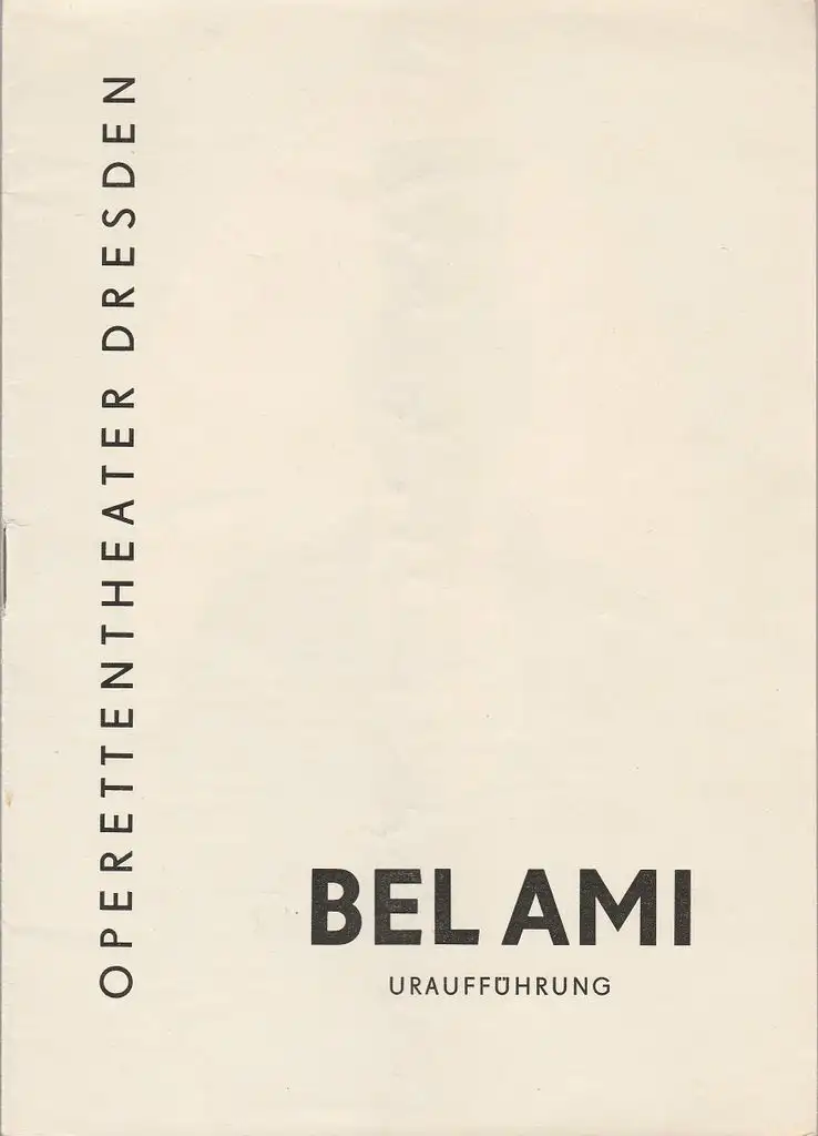 Ein Musical von Peter Kreuder nach dem Roman von Guy de Maupassant. Musikalische Bearbeitung: Karl-Heinz Hanicke. Text: Therese Angeloff und Franz Gribitz. Inszenierung: Fritz Steiner. Musikalische Leitung: Karl-Heinz Hanicke. Ausstattung: Werner Schulz. Choreographie: Rudolf Klüver. Mitwirkende: Horst Schulze, Richard Stamm, Helene Gramont, Hiltrud Eulitz, Erich Bohne, Helma Reuter, Anneliese Zänsler, Gardy Herzfeld, Günther Peters, Wolfgang Böttcher, Elsa Geiger, Ingeborg Kassner, u.a. - Theaterprogramm, Opernprogramm, Ballettprogramm, Musicalprogramm, Konzertprogramm, Theatermemorabilia, Programmhefte Sammlung, deutsche Theatergeschichte.