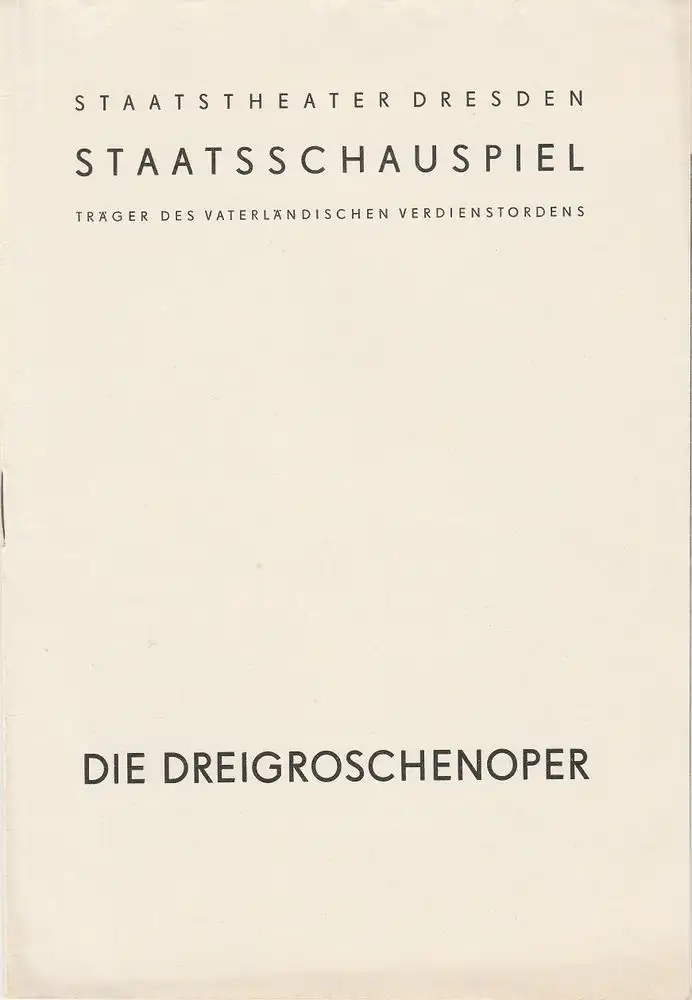 Staatstheater Dresden, Staatsschauspiel, Gerd Michael Henneberg, Gotthard Müller, Heinz Pietzsch: Programmheft Bertolt Brecht / Kurt Weill: DIE DREIGROSCHENOPER.