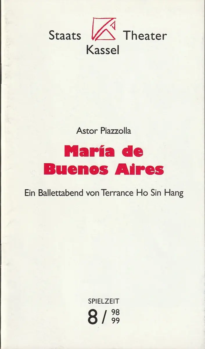 Staatstheater Kassel, Michael Leinert, Karl Gabriel von Karais, Diana Keitel: Programmheft Uraufführung BALLETTABEND Astor Piazolla MARIA DE BUENES AIRES 20. März 1999 Schauspielhaus Spielzeit 8 1998 / 99 Heft 17.