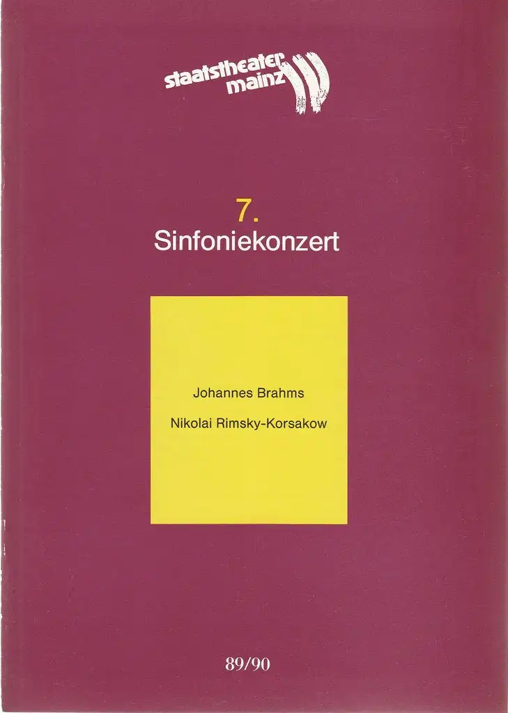 Titel: Programmheft 7. SINFONIEKONZERT Philharmonisches Orchester des Staatstheaters Mainz 9. + 10. März 1990 Spielzeit 1989 / 90 Mainzer Konzerthefte Nr. 7