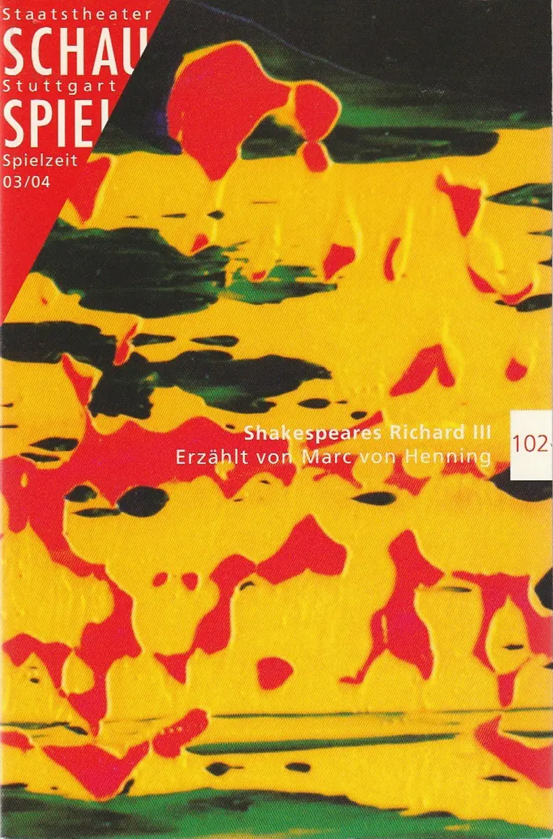 Staatstheater Stuttgart, Friedrich Schirmer, Michael Pfropfe, David Tushingham: Programmheft SHAKESPEARES RICHARD III. Premiere 16. Juli 2004 Spielzeit 2003 / 04 Nr. 102.