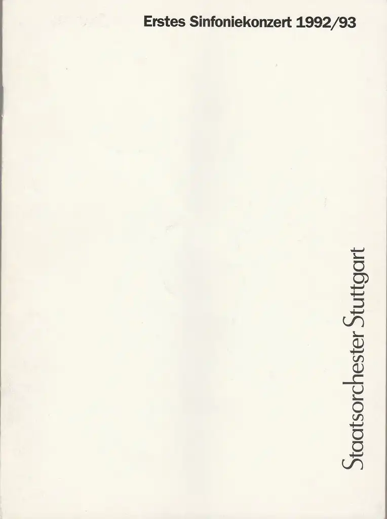 Titel: Programmheft STAATSORCHESTER STUTTGART ERSTES SINFONIEKONZERT 6. + 7. September 1992 Liederhalle Hegelsaal Spielzeit 1992 / 93
