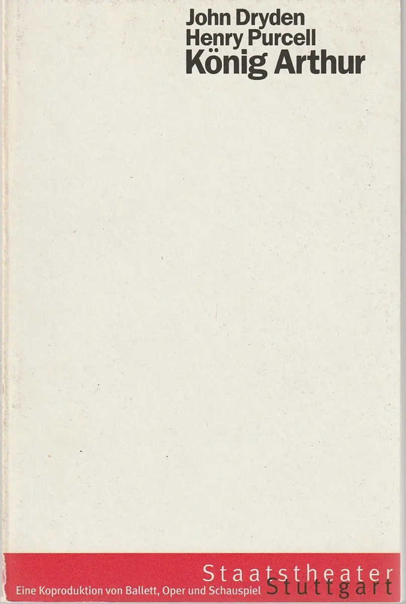 KING ARTHUR OF THE BRITISH WORTHY. Dramatick opera. Text von John Dryden. Musik: Henry Purcell. Musikalische Leitung: Alan Hacker. Regie: Martin Kusej. Choreographie: Marco Santi. Bühne: Martin Zehetgruber. Kostüme: Nina Reichmann, Audrey Fisher. Mitwirkende: Samuel Weiss, Marcus Calvin, Günther Vetter, Elmar Roloff, Bernhard Baier, Andreas Lichtenberger, u.a. - Theaterprogramm, Opernprogramm, Ballettprogramm, Musicalprogramm, Konzertprogramm, Theatermemorabilia, Programmhefte Sammlung, deutsche Theatergeschichte.