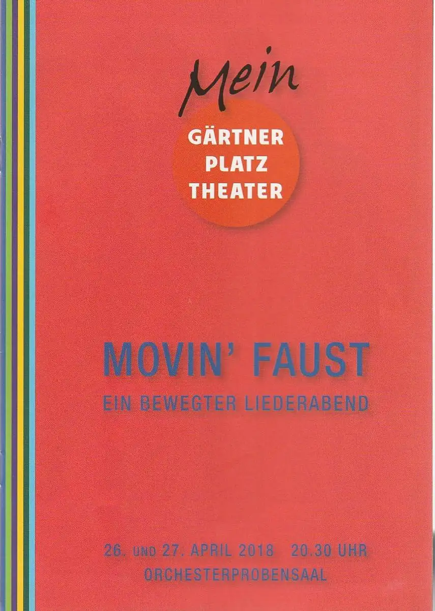 Staatstheater am Gärtnerplatz, Josef E. Köpplinger, Daniel C. Schindler, Johannes Weiß,Marie-Laure Briane (Probenfotos): Programmheft MOVIN' FAUST 26. und 27. April 2018 Spielzeit 2017 / 18 im Rahmen des Faust-Festival 2018.