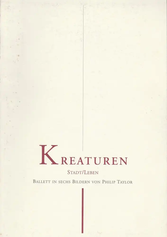 Staatstheater am Gärtnerplatz, Klaus Schultz, Jan Adamiak: Programmheft Uraufführung KREATUREN - City / Life. Ballett von Philip Taylor 17. Mai 1998 Prinzregententheater Spielzeit 1997 / 98 Nr. 15.