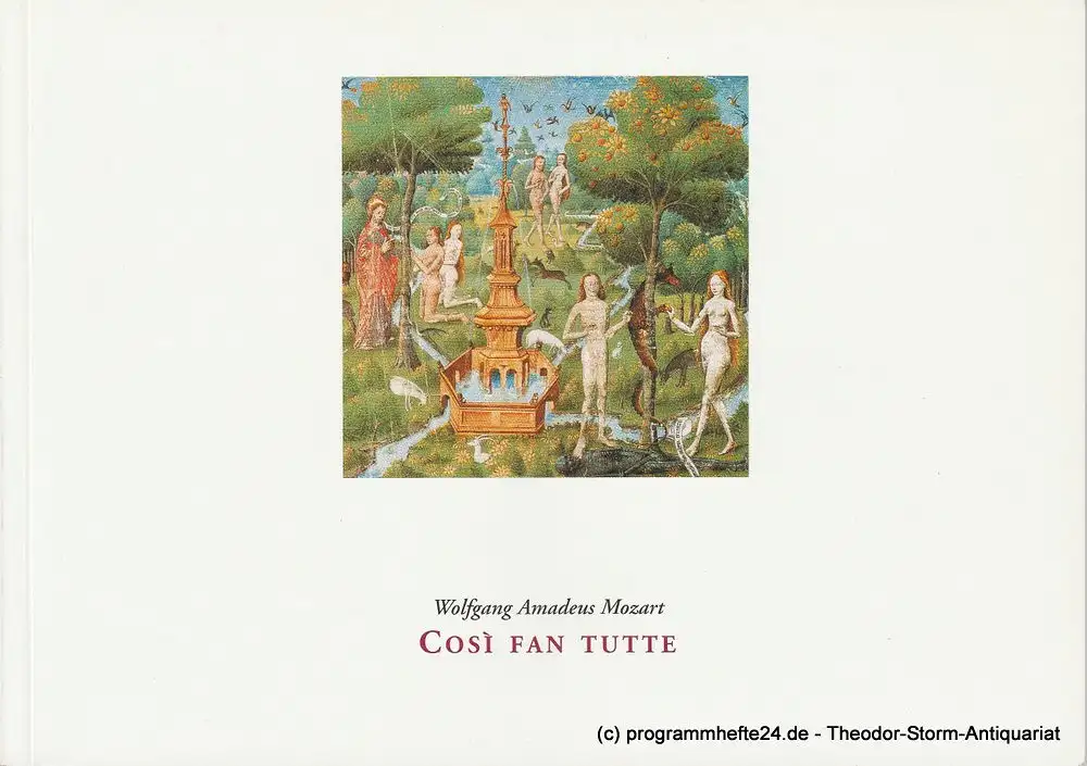 So machen´s alle oder Die Schule der Liebenden. Musik: Wolfgang Amadeus Mozart. Musikalische Leitung: David Stahl. Inszenierung: Jochen Schölch. Bühne: Eberhard Kürn. Kostüme: Andrea Fisser. Mitwirkende: Sandra Moon, Alexandra Petersamer, Gary L. Martin, Thomas Cooley, Marianne Larsen, Thomas Gazheli - Theaterprogramm, Opernprogramm, Ballettprogramm, Musicalprogramm, Konzertprogramm, Theatermemorabilia, Programmhefte Sammlung, deutsche Theatergeschichte.