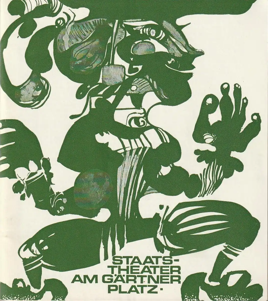 Komische Oper in zwei Akten von Ingeborg Bachmann nach einer Parabel aus Der Scheik von Alexandria und seine Sklaven von Wilhelm Hauff. Musik: Hans Werner Henze. Münchner Erstaufführung. Dirigent: Ulrich Weder. Inszenierung: Kurt Pscherer. Ausstattung: Ruodi barth. Choreographie: Hans Knütter. Mitwirkende: Gerhard Hofer, Jörn W. Wilsing, Rico Serbo, Gwendolyn Walters, Alexander Malta, Richard Kogel, Robert Granzer, u.a. - Theaterprogramm, Opernprogramm, Ballettprogramm, Musicalprogramm, Konzertprogramm, Theatermemorabilia, Programmhefte Sammlung, deutsche Theatergeschichte.