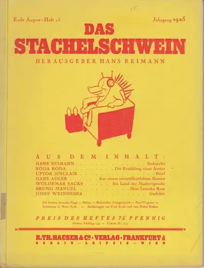 Stachelschwein, Das. - Reimann, Hans (Hrsg.): Das Stachelschwein. Heft 15 Ende August. Jahrgang 1925.