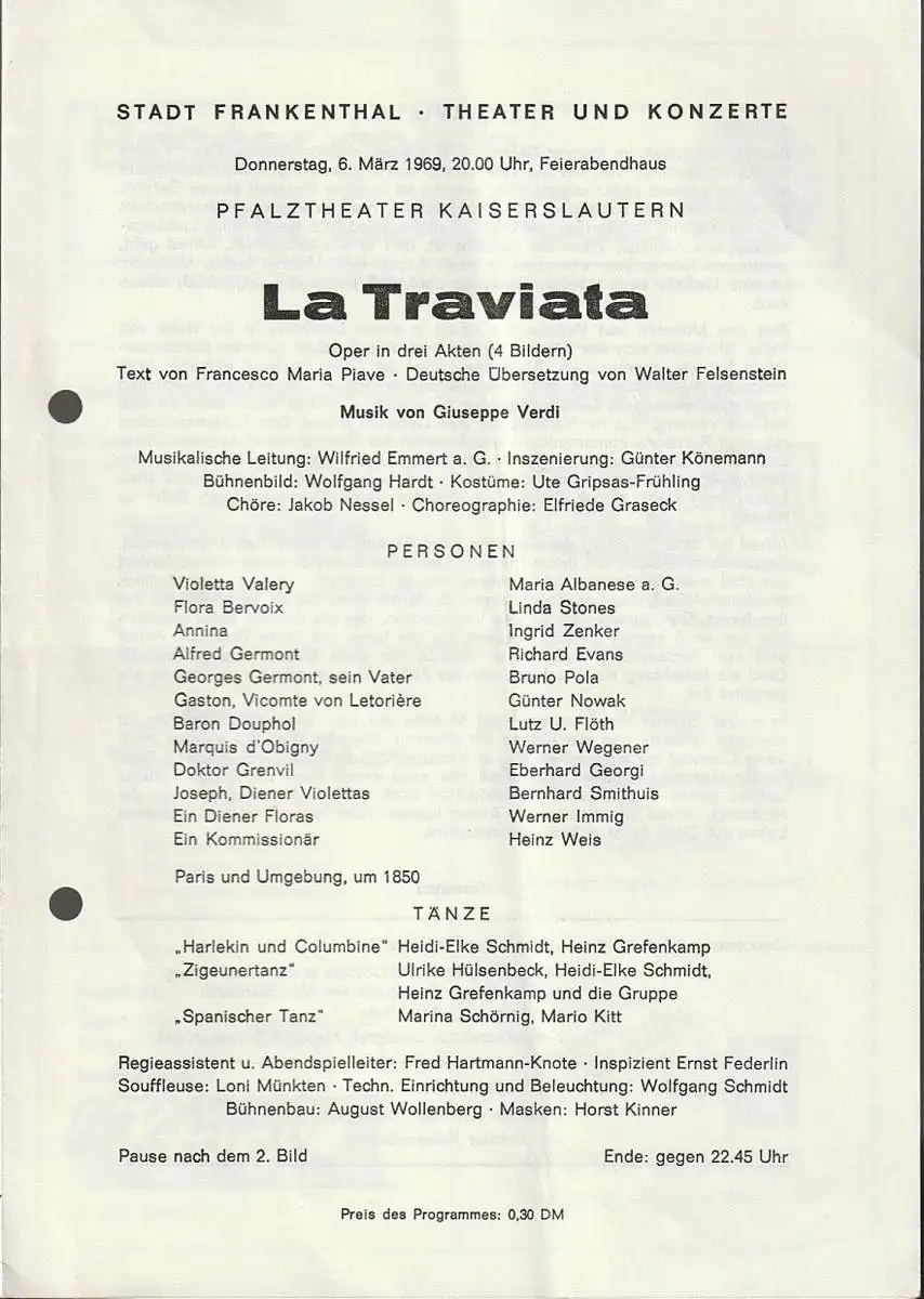 Titel: Programmheft Giuseppe Verdi LA TRAVIATA 6. März 1969 Feierabendhaus Frankenthal