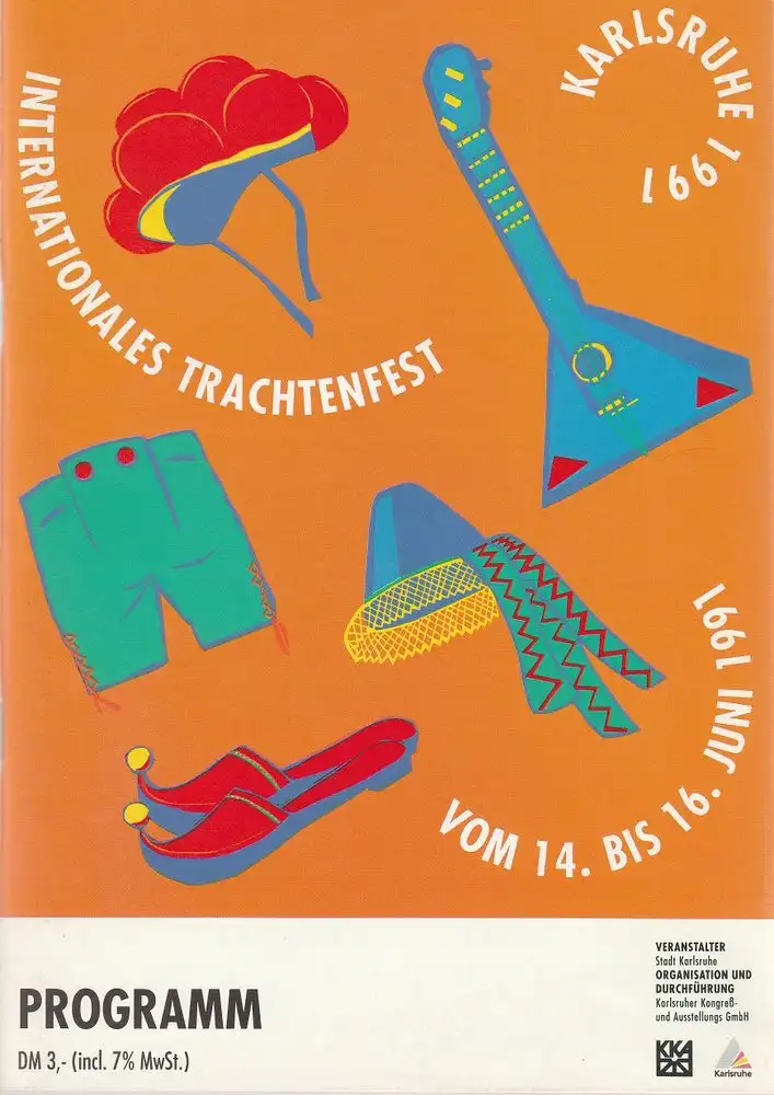 Stadt Karlsruhe, Karlsruher Kongreß- und Ausstellungs GmbH: Programmheft INTERNATIONALES TRACHTENFEST 14. bis 16. Juni 1991.