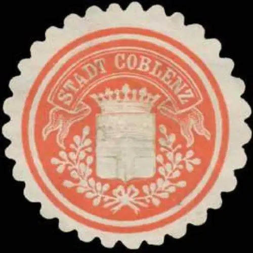 Coblenz, rot, weiß, geprägt, Größe/Zustand: 4 , fleckig, Original Verschluss-Siegelmarke aus Papier welche früher von Behörden, Firmen etc. zum Versiegeln der Briefe benutzt wurden
